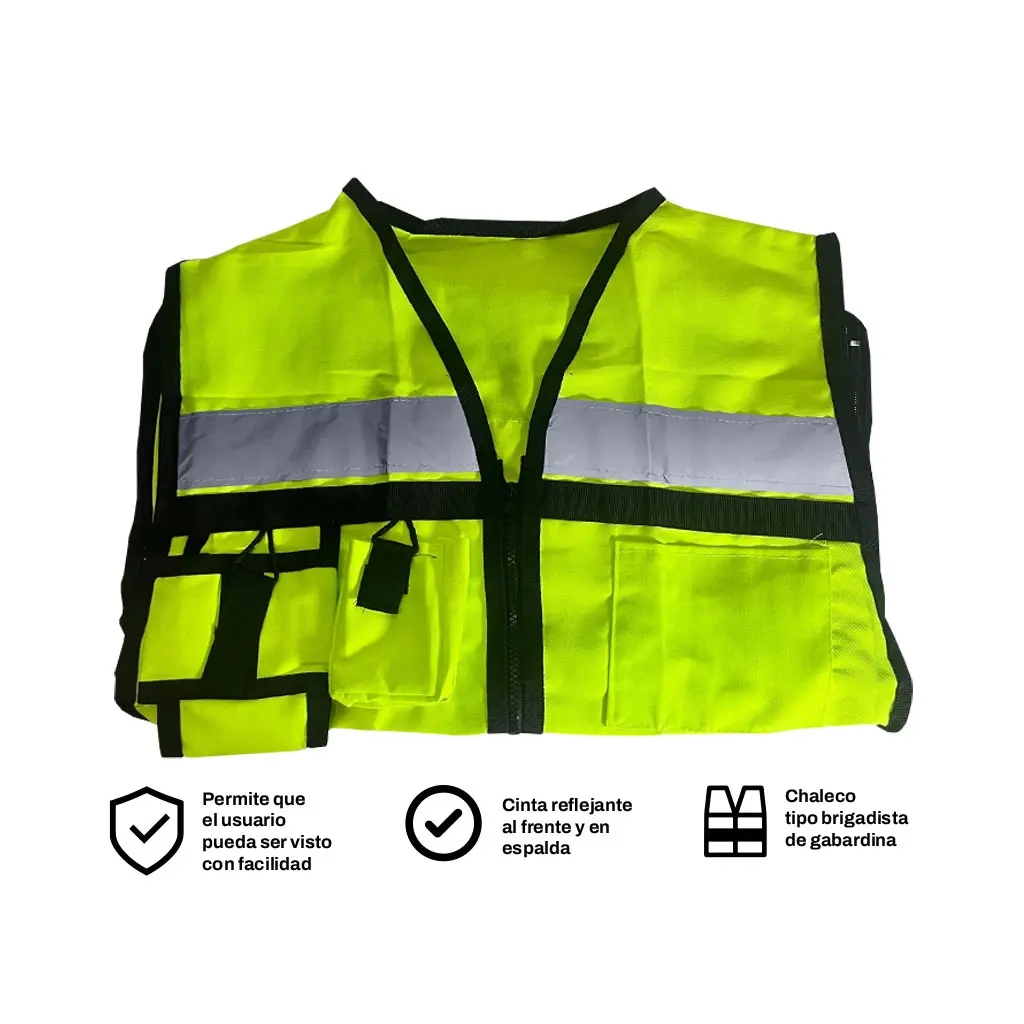 Diseñado para brindar máxima visibilidad, seguridad y funcionalidad, este chaleco permite que el usuario sea fácilmente identificado en zonas de trabajo o situaciones de emergencia.