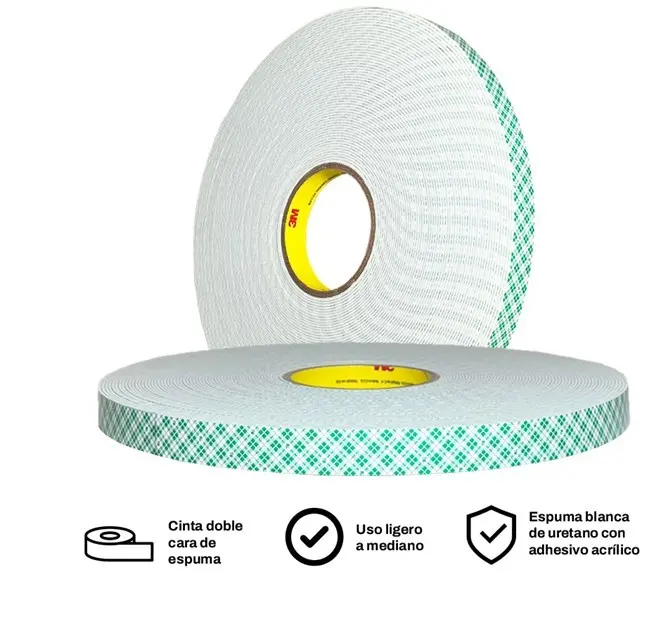 La cinta doble capa de uretano 3M® 4026 es una cinta de espuma de celda abierta diseñada para ofrecer adhesión fuerte, flexibilidad y excelente amortiguación. Su estructura de espuma de poliuretano con adhesivo acrílico en ambos lados permite una unión segura incluso en superficies irregulares o texturizadas.